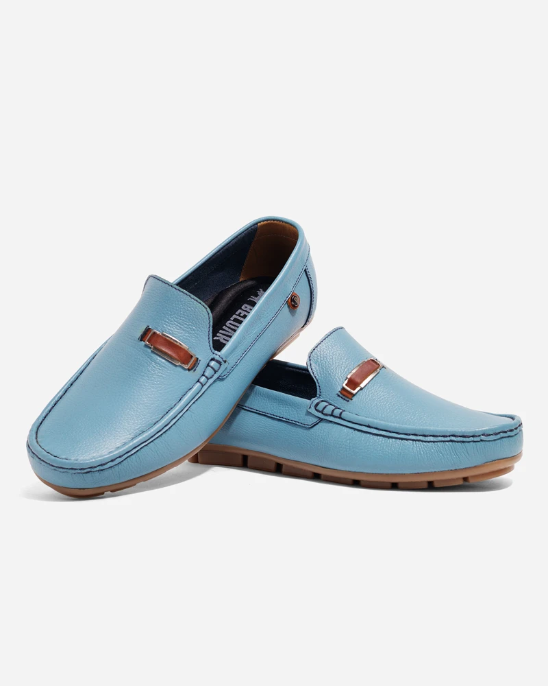 Mocasines Cuero Azul Cielo Correa