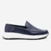 Diseño que rompe lo tradicional. Estos mocasines combinan cuero azul con una textura tipo punto en la capellada, creando un contraste visual único que aporta frescura y modernidad al calzado clásico.