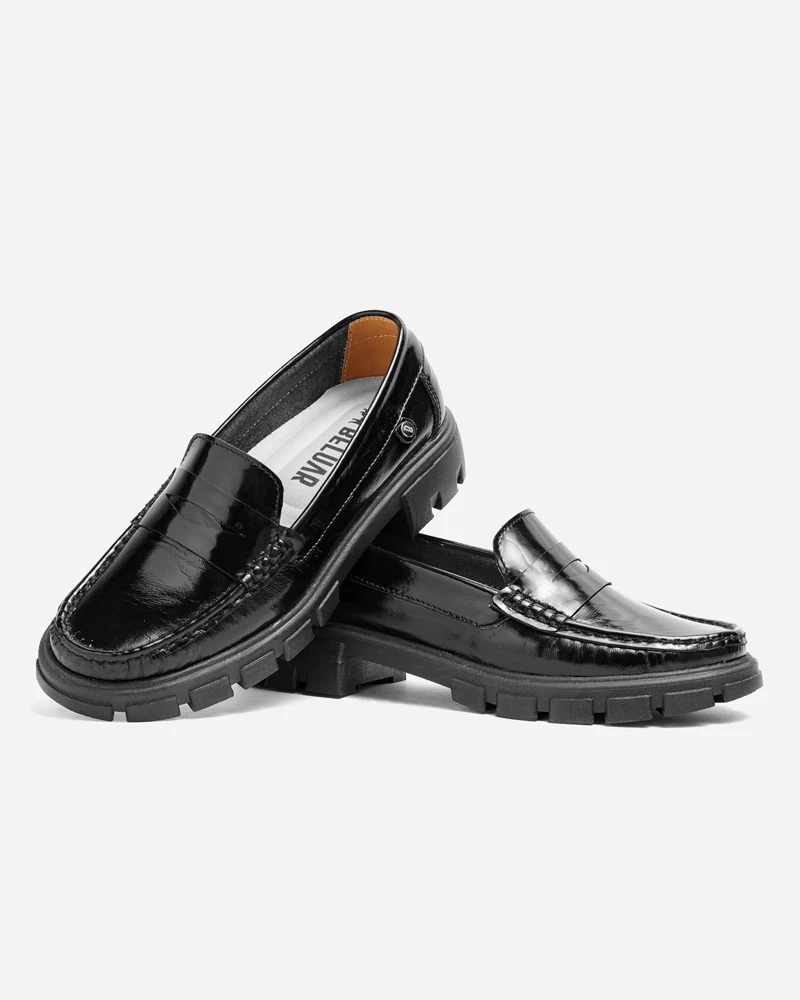Estos mocasines para mujer en cuero charol negro combinan elegancia clásica con un diseño moderno de suela gruesa, ideales para quienes buscan estilo, comodidad y personalidad en un solo calzado. Su acabado en charol aporta un brillo sofisticado que eleva cualquier outfit, desde looks formales hasta combinaciones casuales y urbanas.