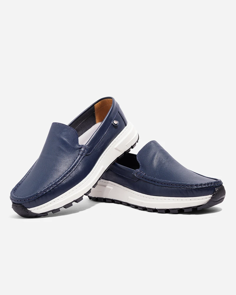 La combinación perfecta entre comodidad y estilo. Estos mocasines deportivos en cuero azul están diseñados para acompañarte en tu día a día con un look moderno, fresco y versátil.